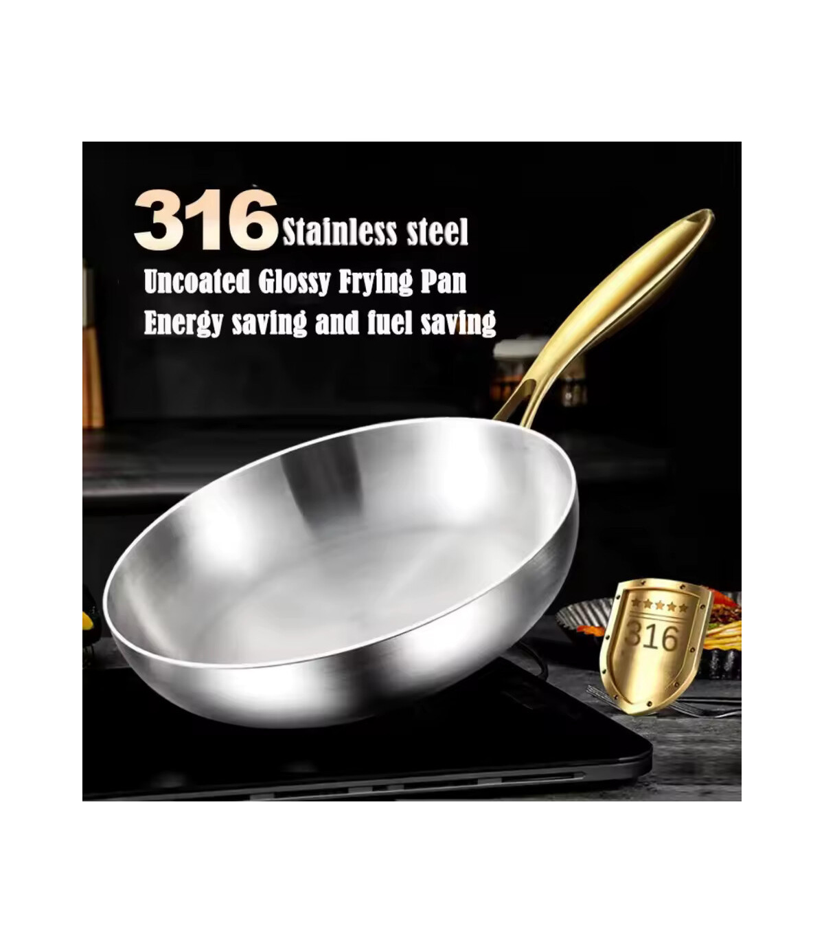 • • 316 stainless steel construction: this frying pan is made of high-quality 316 stainless steel, offering exceptional durability and resistance to rust and corrosion, ensuring long-lasting use.