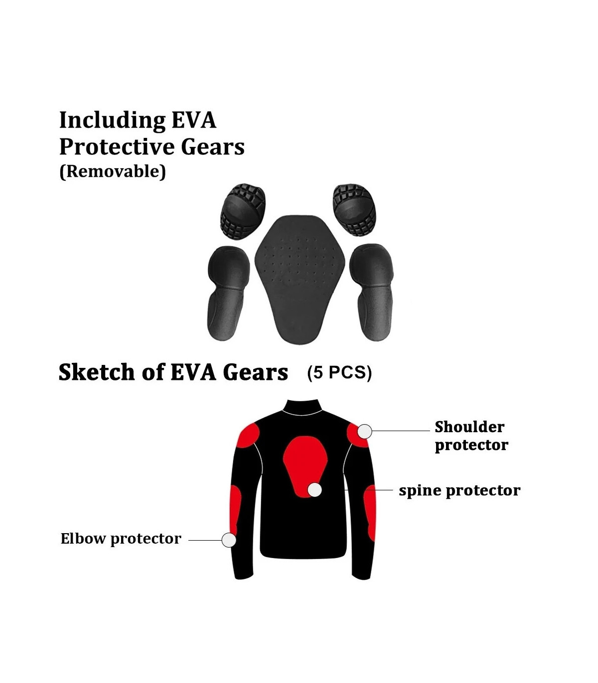 Las 5 almohadillas de protección EVA extraíbles integradas pueden protegerte de manera segura mientras conduces, y también se pueden usar en la vida diaria.