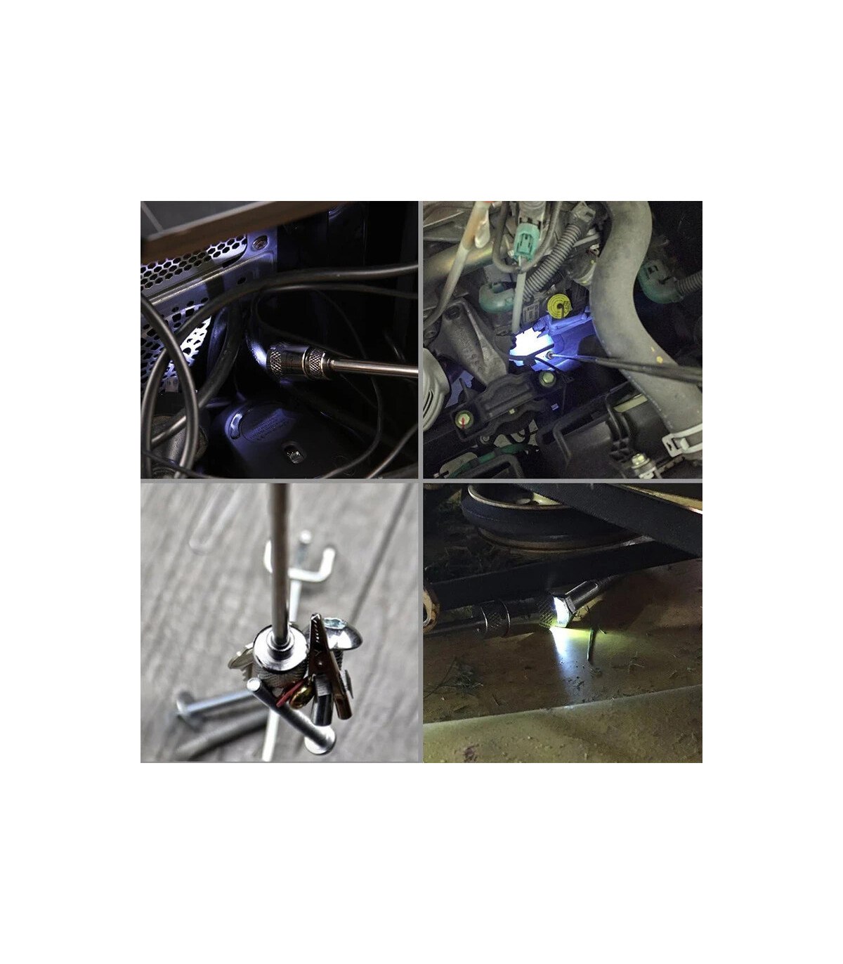 3. Linterna súper brillante: cuenta con tres bombillas LED súper brillantes; cabeza y base magnéticas; cuello giratorio de 360°; clip de bolsillo alargado de acero inoxidable; ayuda a iluminar y agarrar herramientas en lugares oscuros y estrechos.