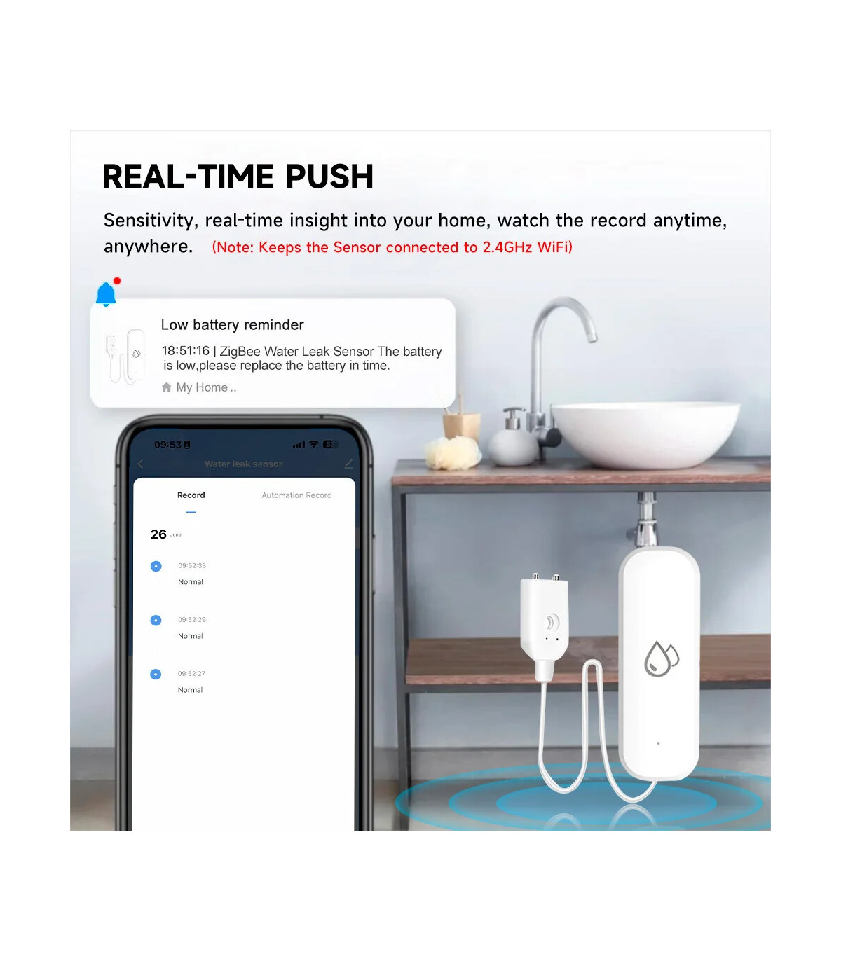 Le détecteur de fuite d'eau peut fonctionner normalement dans les maisons, les hôtels, les magasins, les bureaux et les appartements.Protégez chaque instant.