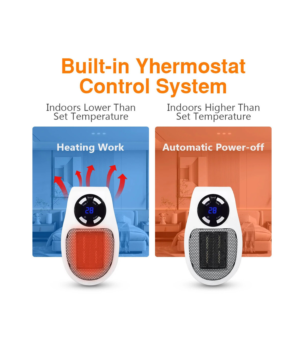 [Basso consumo energetico] Il riscaldatore utilizza una bassa potenza di 500 watt, che è più efficiente dal punto di vista energetico ed economico rispetto a un riscaldatore ad alta potenza. Inoltre, non sovraccaricherà il circuito. Perfetto per le persone che vivono in climi miti