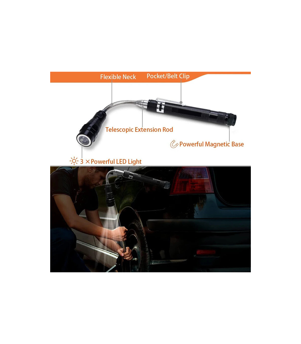 3. Torcia super luminosa: dotata di tre lampadine LED super luminose; testa e base magnetiche; colonna girevole a 360°; clip da tasca allungata in acciaio inossidabile; aiuta a illuminare e a prendere gli strumenti nei luoghi bui e stretti.