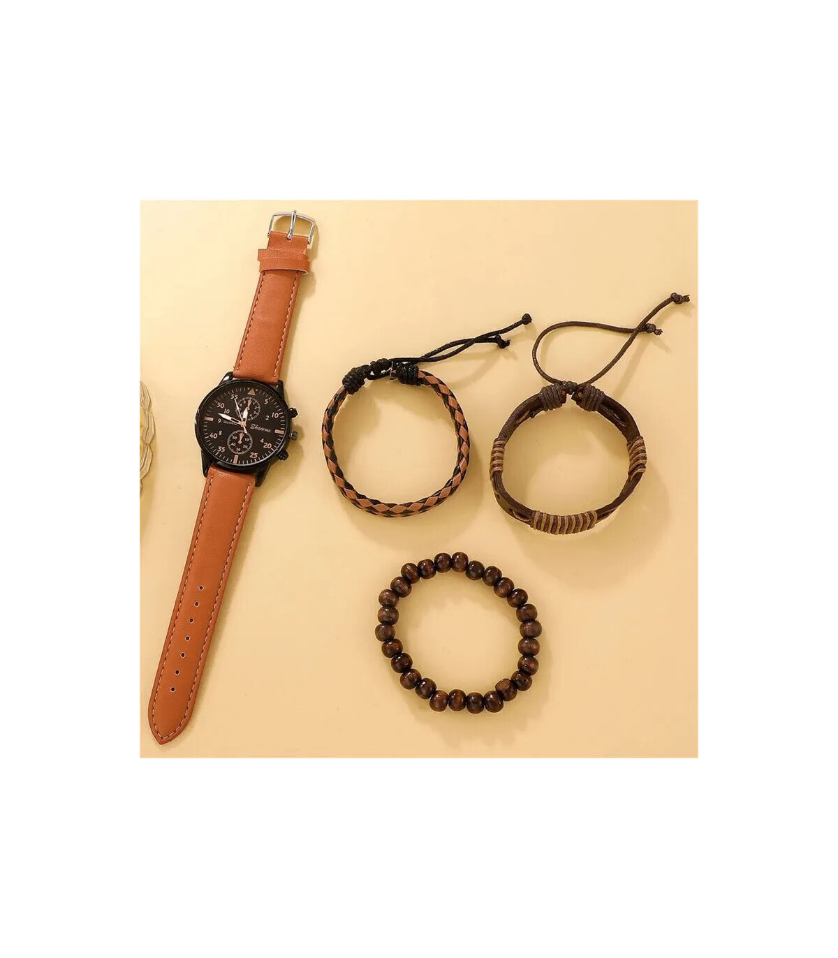 AKIMANIA.COM - [Nero] Nuovo Orologio da Uomo di Lusso con Bracciale Set di Moda Affari Marrone in Pelle Quarzo