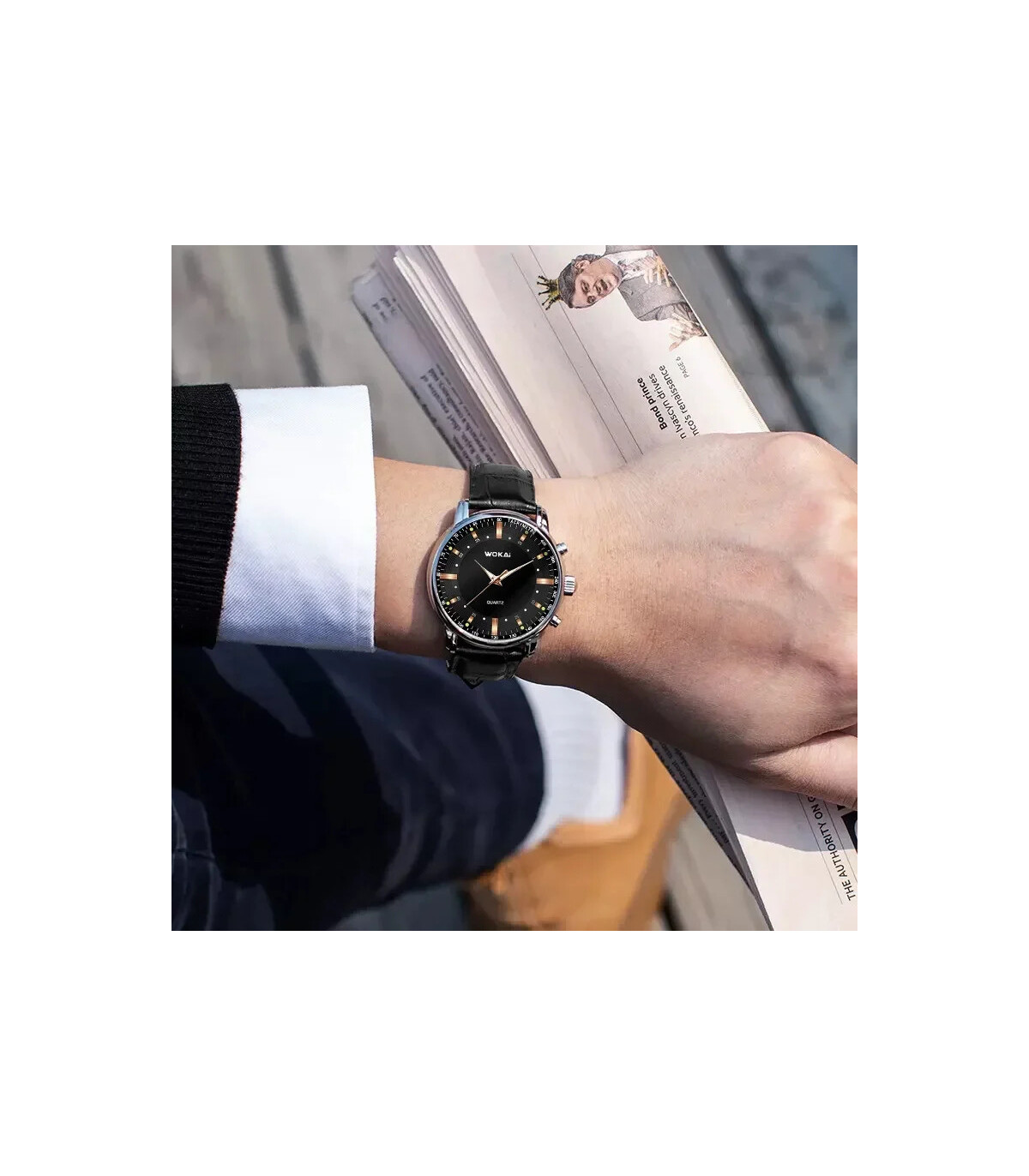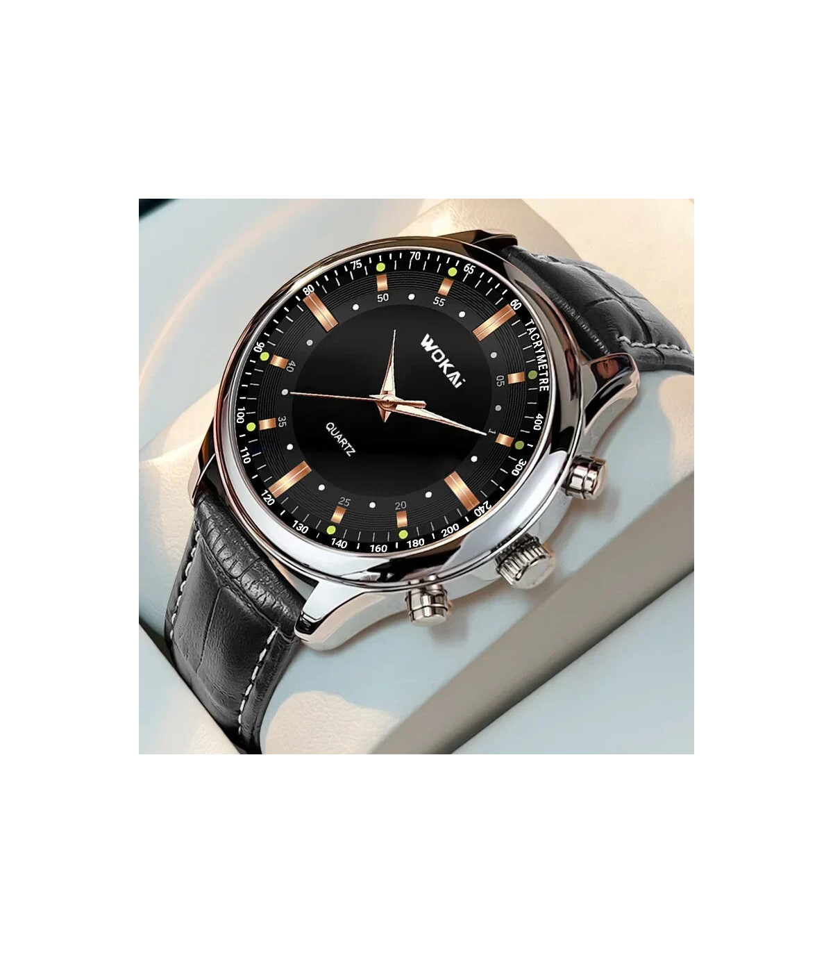 AKIMANIA.COM - [Oro] Orologio da uomo in bronzo con cinturino in pelle, orologio sportivo al quarzo.